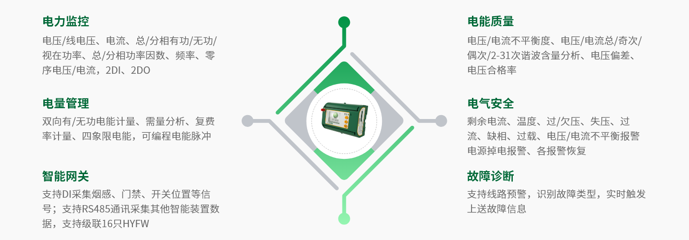 簡介: HYFW是—款集電力監控、電能計量管理、電能質量分析、電氣安全于一體的全息電高端智慧式用電測控終端。可作為智慧安全用電、配電運維、智能配電、能耗監測、電力需求側管理等系統的傳感終端,組網模式多樣、接線方便、便于安裝。